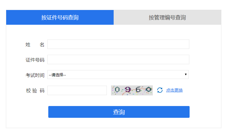 第三步:進(jìn)入證書查詢頁面后,可以選擇“按證件號(hào)碼查詢”和“按管理編號(hào)查詢”,相信成績查詢的時(shí)候大部分考生都會(huì)忘了管理編號(hào),所以請(qǐng)切換到“按證件號(hào)查詢”,使用身份證信息查詢成績。